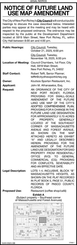 Notice of SaleNotice here given of sale or disposal of property stored at Hoffman’s Mini Storage, Inc 522 E. Lemon St., Tarpon Springs, FL 34689Contents belonging to Ron Pasto, Unit 16A. Furniture,... Show more »