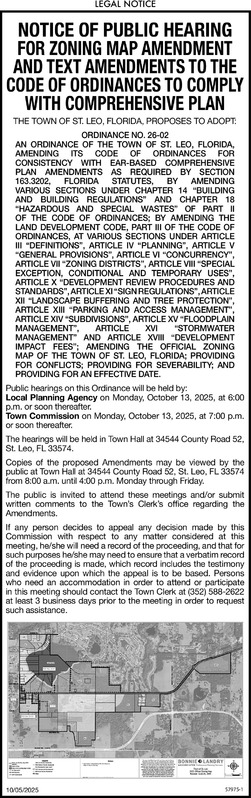 To Whom It May Concern: Notice is hereby given of intent by Representative Randy Maggard of East Pasco, District 54, to apply to the Florida Legislature, in the 2026 regular session or any special ... Show more »