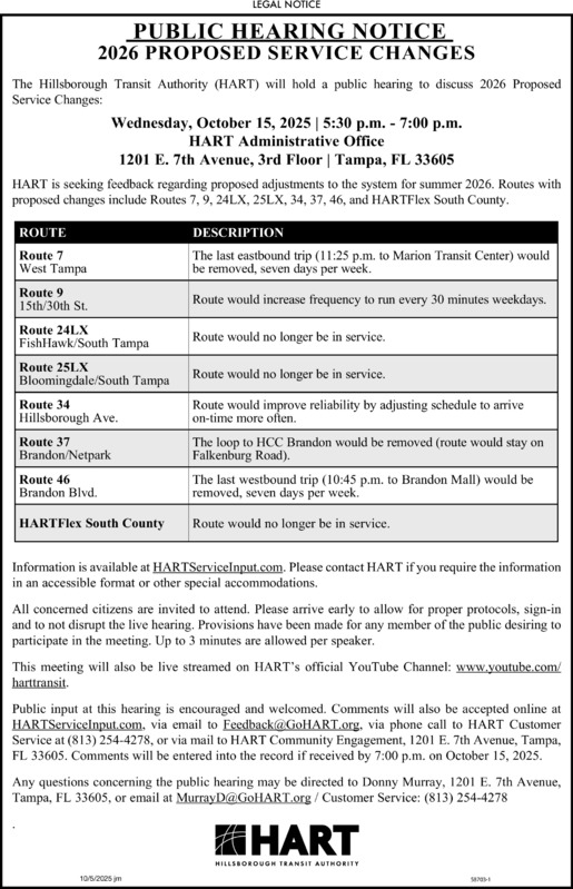 To Whom It May Concern: Notice is hereby given of intent by Representative Randy Maggard of East Pasco, District 54, to apply to the Florida Legislature, in the 2026 regular session or any special ...