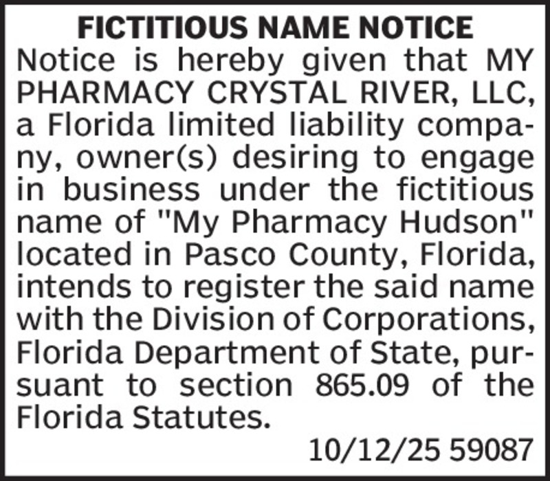 NOTICE UNDER FICTITIOUS NAME LAW PURSUANT TO SECTION 865.09, FLORIDA STATUTES NOTICE IS HEREBY GIVEN that the undersigned, desiring to engage in business under the Fictitious Name of Marathon Oil C...