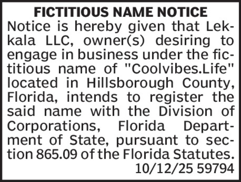 Fictitious Name for CoolVibes.Life