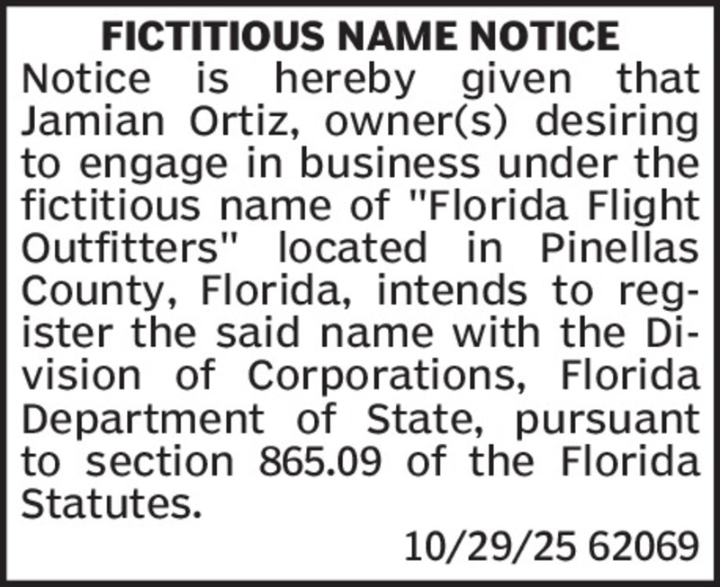NOTICE UNDER FICTITIOUS NAME LAW PURSUANT TO SECTION 865.09, FLORIDA STATUTES NOTICE IS HEREBY GIVEN that the undersigned, desiring to engage in business under the Fictitious Name of PRAXIS RX PHAR...