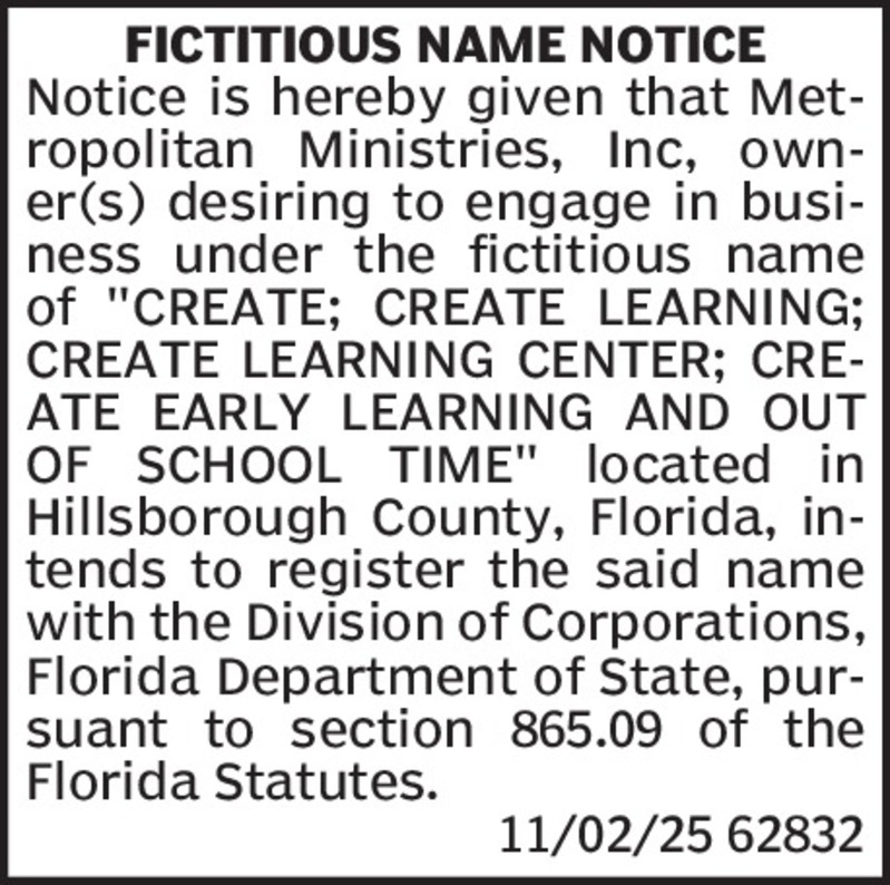 FICTITIOUS NAME NOTICENotice is hereby given that Decks & Docks Lumber Company, LLC, sole owner, desiring to engage in business under the fictitious name of “Deckstore.com” located in Pinellas Coun...