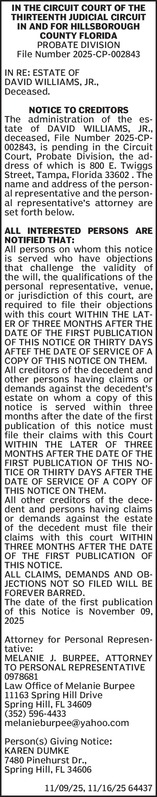 Probate Notice - Williams