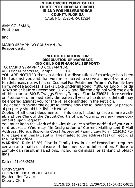 IN THE CIRCUIT COURT OF THE SIXTH JUDICIAL CIRCUITIN AND FOR PASCO COUNTY, FLORIDACASE NO.: 2025CA003487CAAXESIN RE: FORFEITURE OF:$9,379.00 in U.S. CurrencyNOTICE OF ACTIONTO: Abimael Viruet Guzma... Show more »