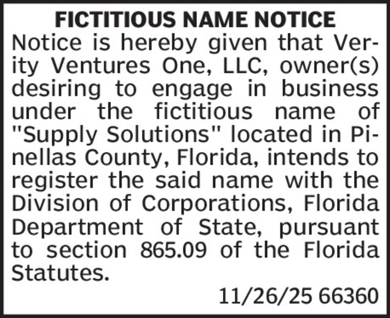 Fictitious Name NoticeNotice is hereby given that ZT Automotive of Tampa One, LLC, a Florida limited liability company, desiring to engage in business under the fictitious name of Maus Nissan of No... Show more »
