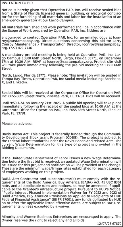 Operation PAR Invitation To Bid
