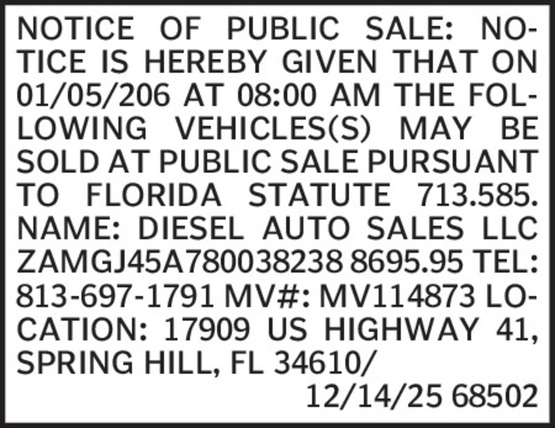 Notice of Disposition of Property Armory Show more »