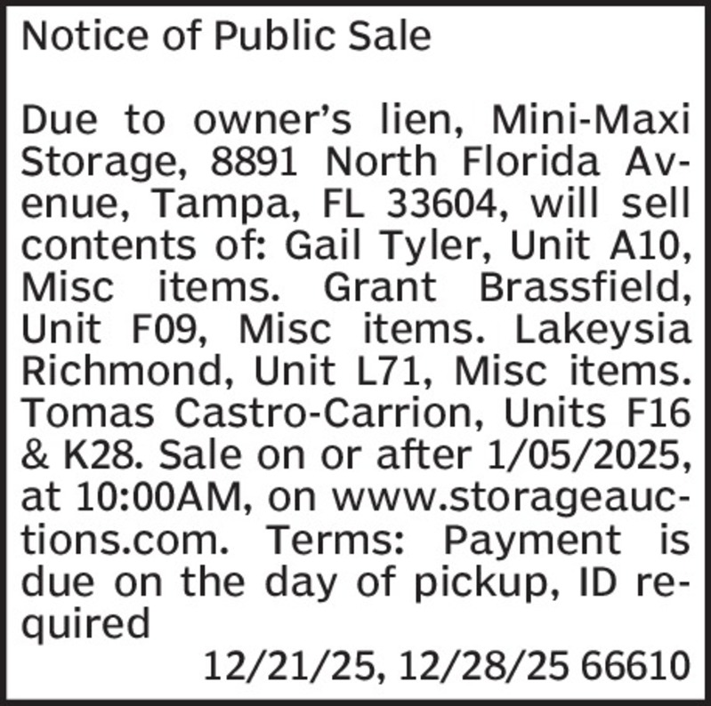 Notice: Non-Judicial Sale of Watercraft located at Blind Pass Marina. Watercraft include; 1983 30ft Catalina “Badfish” (HID#CTYN3033M83D) & 1985 36ft SeaRay AftCabin “Radical Change” (HID#SERF6325E... Show more »