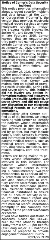 Notice of Cerner’s Data Security Inciden
