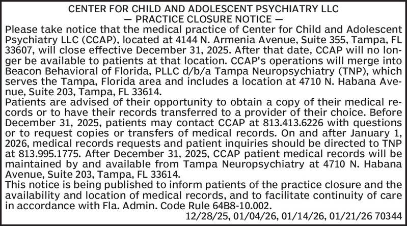 Pinellas County License Board for Children’s Centers and Family Child Care Homes:The Pinellas County License Board for Children’s Centers and Family Day Care Homes will hold a Special Board Meeting...