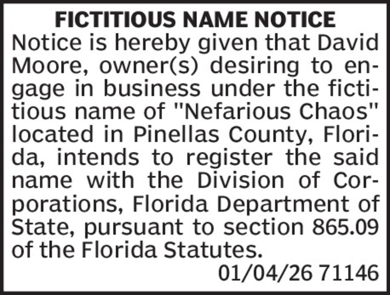 NOTICE UNDER FICTITIOUS NAME LAW PURSUANT TO SECTION 865.09, FLORIDA STATUTES NOTICE IS HEREBY GIVEN that the undersigned, desiring to engage in business under the Fictitious Name of COURTESY SCION...
