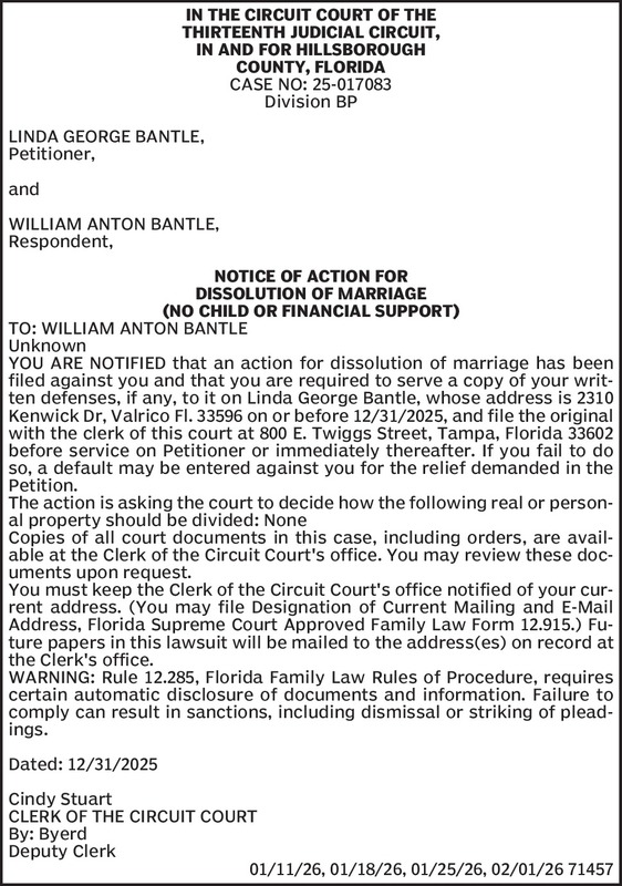 Notice of the City of New Port Richey Qualifying to Run for City MayorThe City Municipal Election will be held on Tuesday, April 14, 2026. All registered voters of the City of New Port Richey will ... Show more »