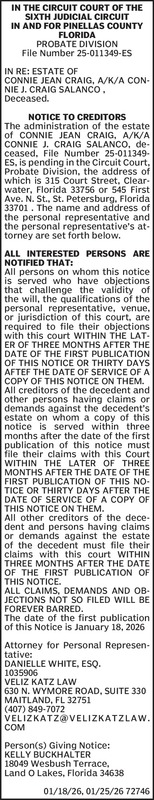 IN THE CIRCUIT COURT FOR CITRUS COUNTY, FLORIDAPROBATE DIVISIONFile No.: 2026 CP 050013 AIN RE: ESTATE OFJOHN W. GRINE III,Deceased.NOTICE TO CREDITORSThe administration of the estate of JOHN W. GR... Show more »