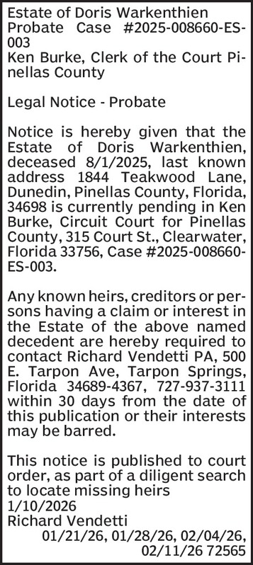 MEDICAL PRACTICE CLOSUREBayCare Medical Group on behalf of Dr. Heidi Goldberg located at 9555 Seminole Blvd., in Seminole closed her gastroenterology practice on June 1, 2025. Current patient recor...