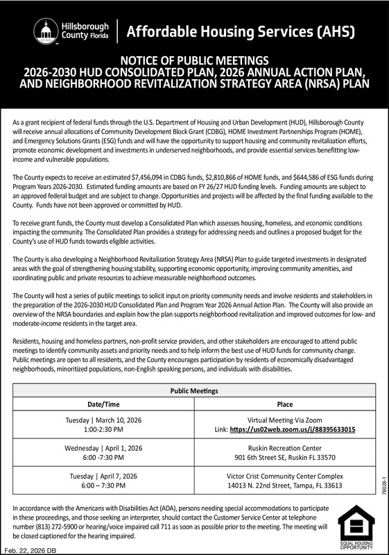 Public NoticeNotice is hereby given that the Hernando County School District’s Student Code of Conduct Advisory Committee will hold a public meeting on Thursday, March 5, 2026, from 2:00 pm to 4:00... Show more »