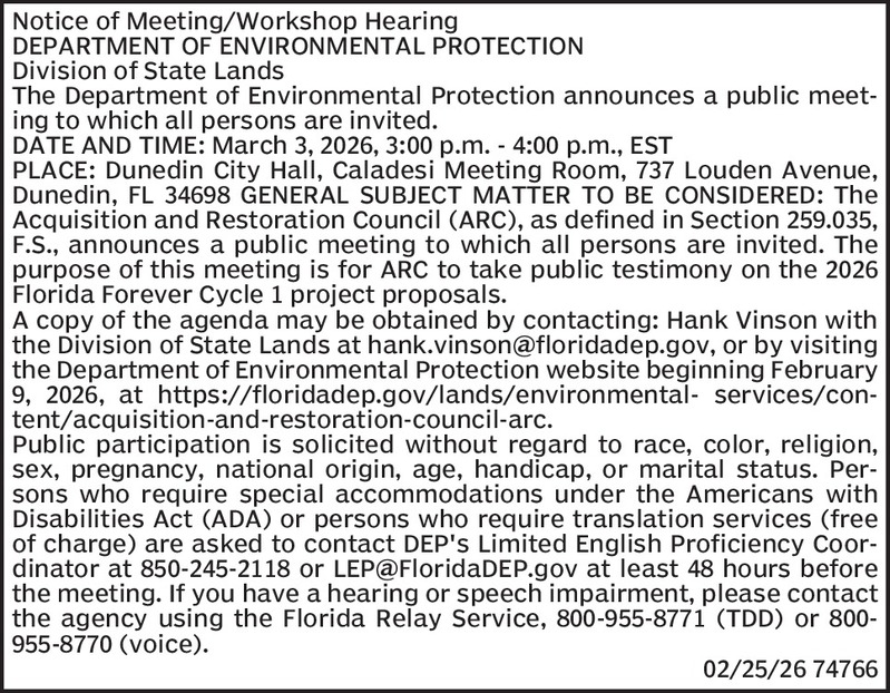 NOTICE OF PUBLIC SALEThe following personal property of Gayle Bulley and/or Gayle Diane Bulley will, on Wednesday, March 4, 2026, at 10:30 a.m., at 3113 State Road 580, Lot 217, Amber Glades Estate... Show more »