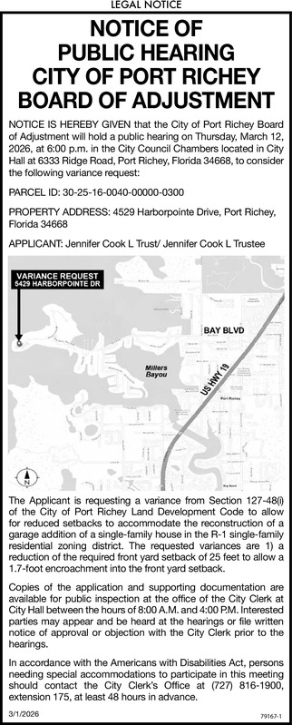 MARINA PUBLIC NOTICE2000 26’ Hunter SailboatHull ID: HUNK01481900Current Owner: Jose LopezCurrently located at Pasadena Marina, 1740 Harbor Pl, South Pasadena, FL 33707. Pursuant to F.S 328.17 to...