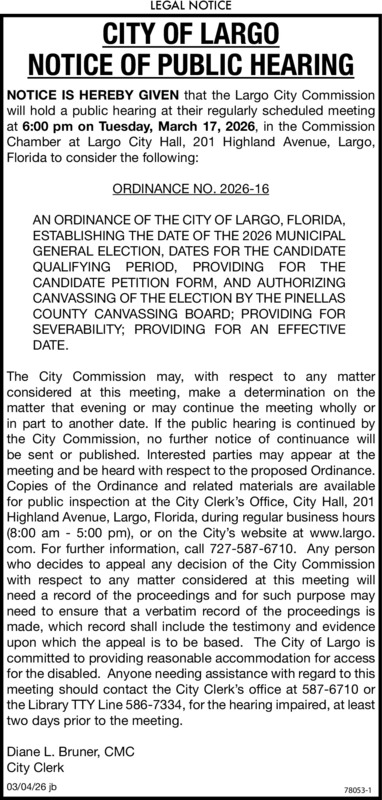 INVITATION TO BIDCLEARWATER, FLORIDAThe Procurement Officer of Clearwater, Florida, will receive sealed bids for the following solicitation until date/time specified: ITB No. 17-26Salsnes Filter Ma...