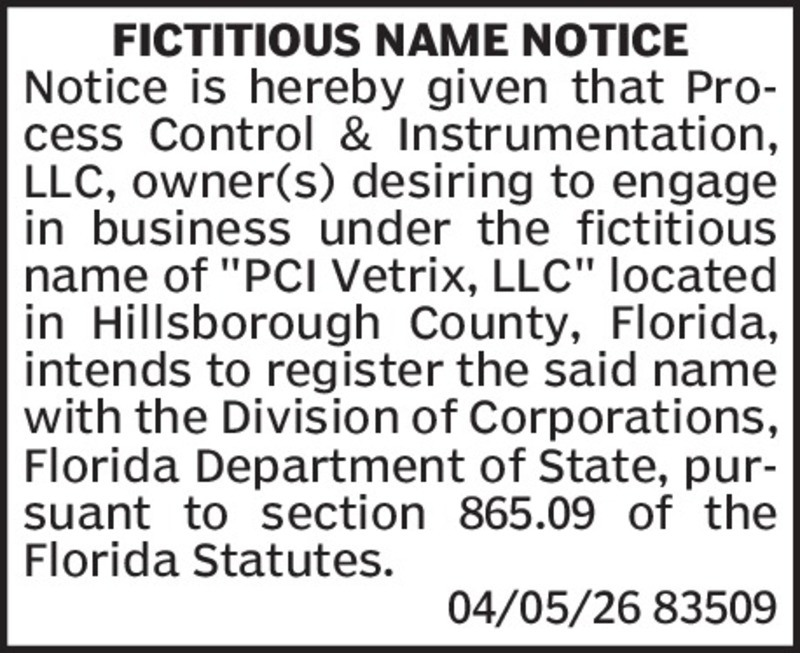 Fictitious Name - PCI Vetrix, LLC