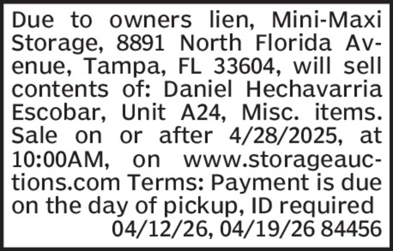 IN THE CIRCUIT COURT OF THE SIXTH JUDICIAL CIRCUIT IN AND FOR PINELLAS COUNTY, FLORIDAREF: 26-001081-CIUCN: 522026CA001081XXCICIIn RE: FORFEITURE OF THREE THOUSAND AND TWELVEDOLLARS AND NO CENTS (... Show more »