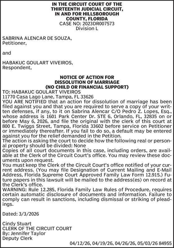 LAKESIDE COMMUNITY DEVELOPMENT DISTRICTNOTICE OF WORKSHOPThe Board of Supervisors (“Board”) of the Lakeside Community Development District (“District”) will hold a public workshop on April 21, 2026... Show more »