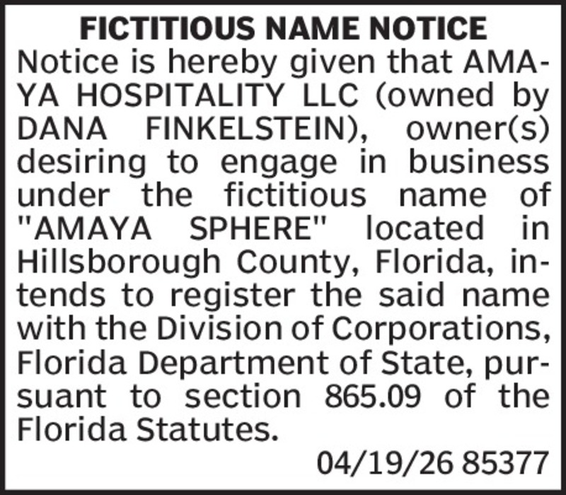 Amaya Hospitality Fictitious Name
