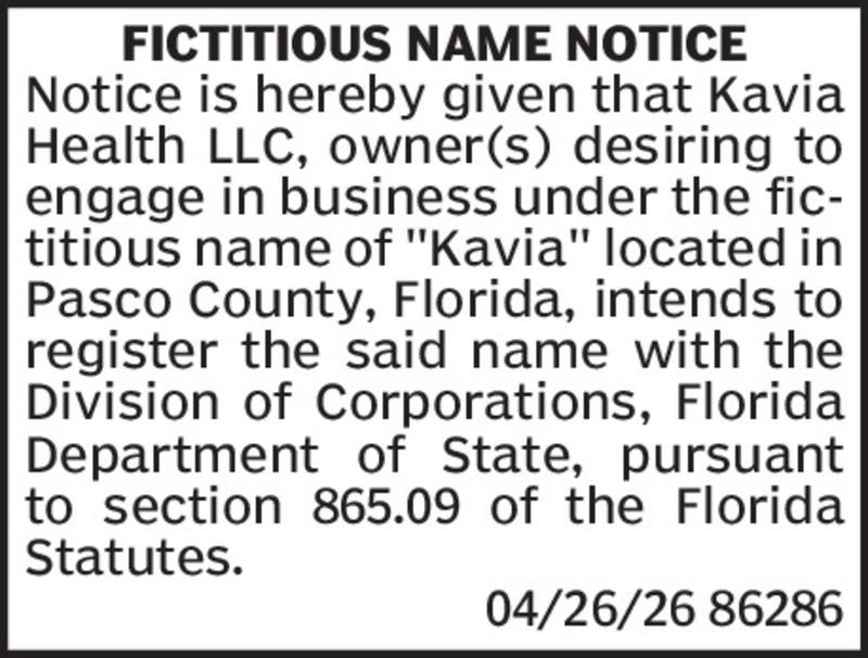 NOTICE IS HEREBY GIVEN that Ridgeline International, LLC, 8255 Greensboro Dr., Tysons Corner, VA 22102, desiring to engage in business under the fictitious name of Veilant, with its principal place...