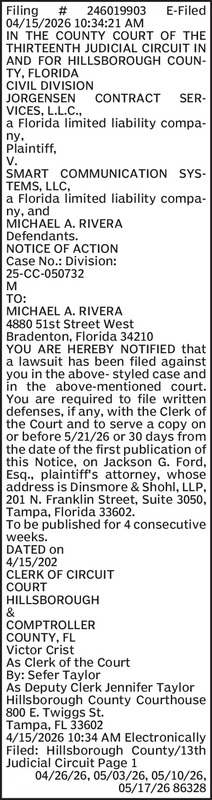 Michael Rivera - Notice of Action