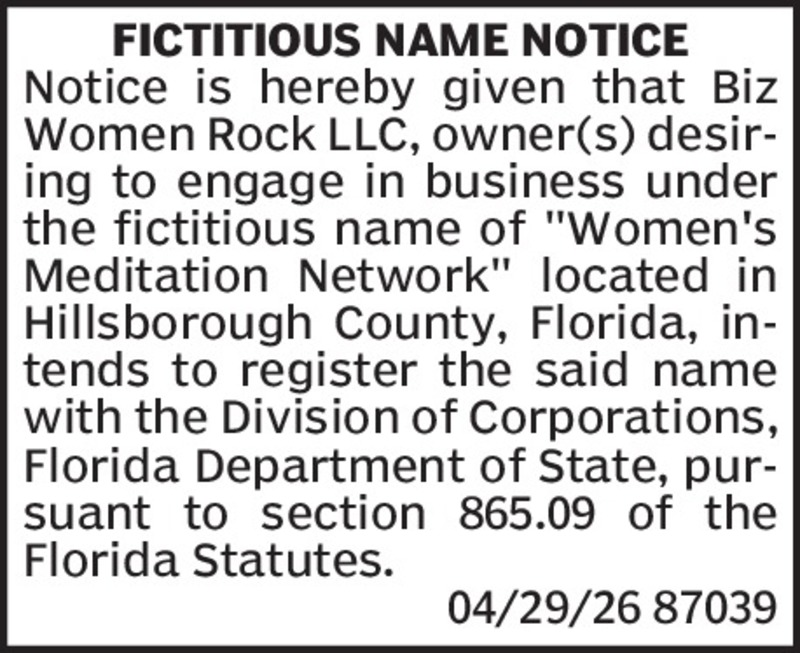 NOTICE UNDER FICTITIOUS NAME LAW PURSUANT TO SECTION 865.09, FLORIDA STATUTES NOTICE IS HEREBY GIVEN that the undersigned, desiring to engage in business under the Fictitious Name of ADVANTAGE INDU...