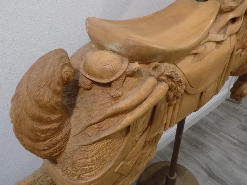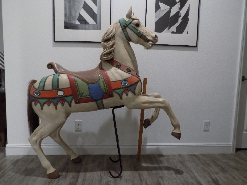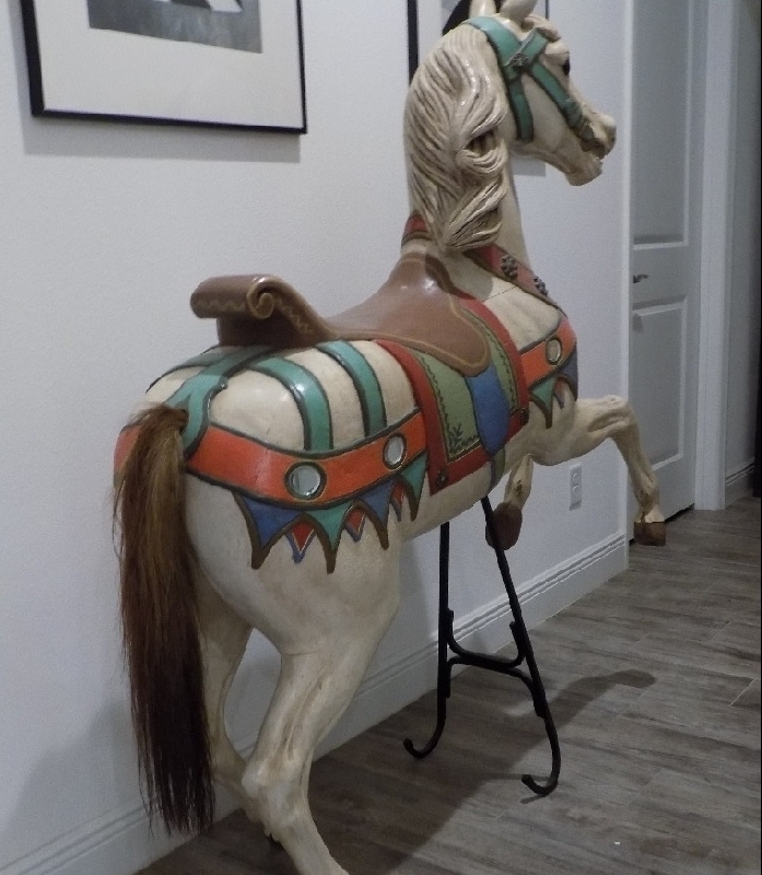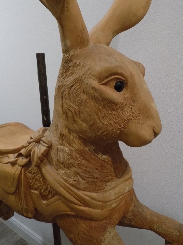 Heyn Prancer Carousel Horse German, pre WW1. In family collection since the 1980s. Restored in early 1990. 62" tall. $3750; French Bayol 48" prancer in primer. 1990s; Signed. $1750; Contemporary Dentzel-style Rabbit. Unpainted, Full size, with stand. Perfect for Easter-themed decor in your establishment! $7500. Sarasota. 941-928-0561