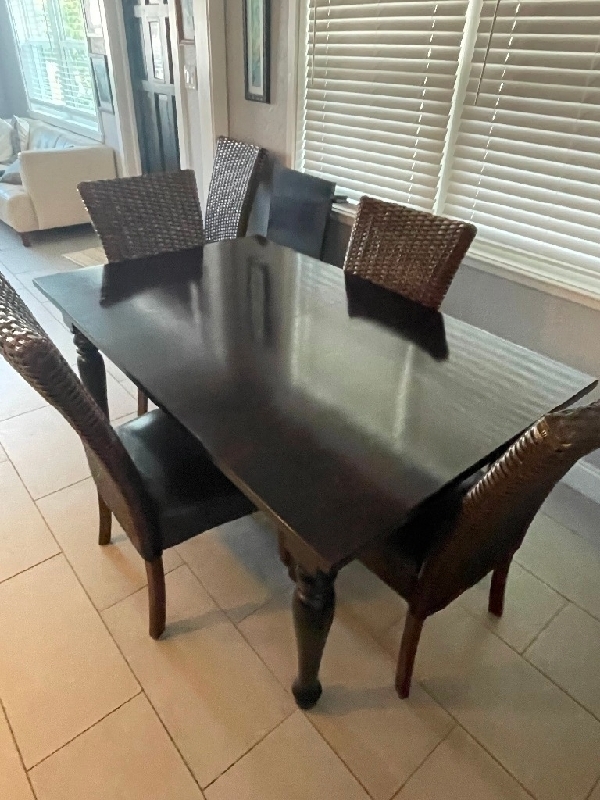 Hardwood Dining Room Table Like new; seats six with leaf. $400. 404-822-3309