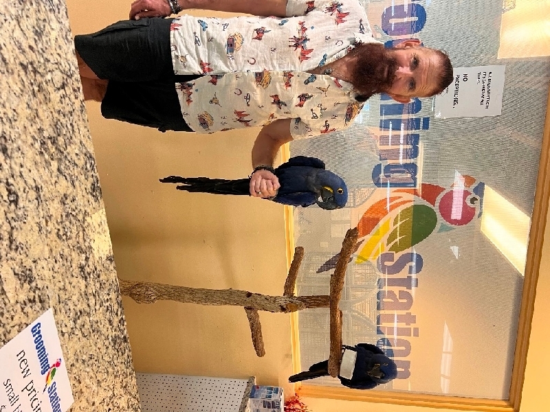 Hyacinth Macaw Male 5yrs. Very sweet and loving. Comes with custom made medical grade stainless dome steel cage 5'x4'x6'tall, outside flight cage 6'x6'x20', extra large tree play gym, toys, food. Loves both female & male. Will hold till Christmas if paid in full. $12,000.